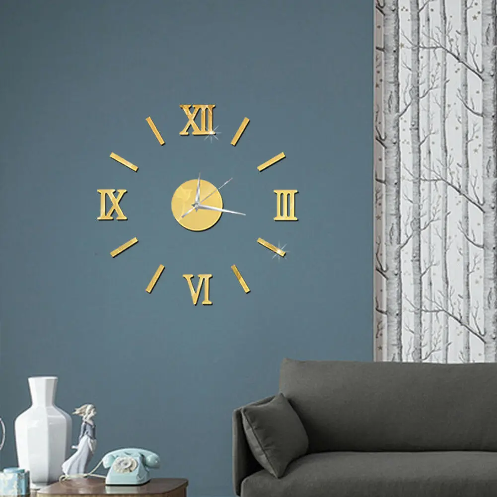 Современные настенные часы сделай сам с цифрами, 3D зеркальная поверхность, наклейка, украшение для дома, гигантские настенные часы с римскими цифрами, большие часы