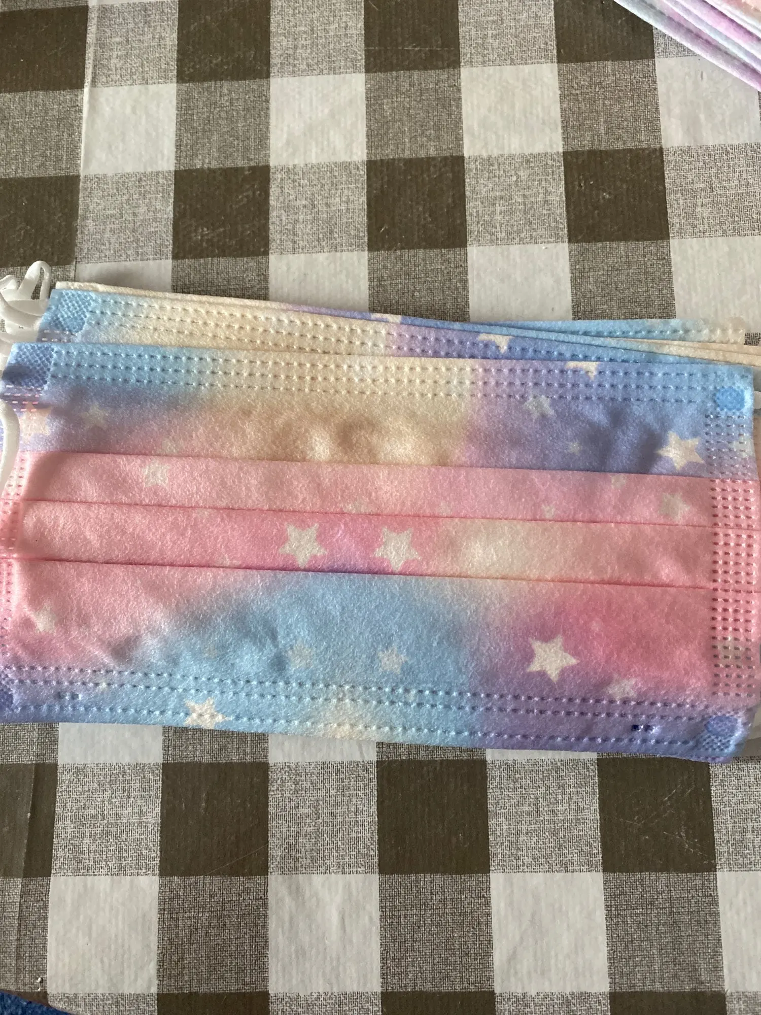Ну, это три слоя маски или около того. Мои дочери очень нравятся дизайны и качество, так как я не знаю, как сломать какую-либо резину или что-то странное, что касается размера, подходящего для возраста, который он помещает в описание.