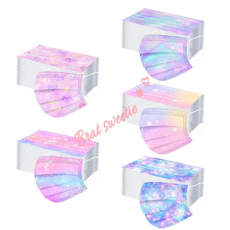 Маска детская одноразовая трехслойная с градиентным принтом, 50 шт.