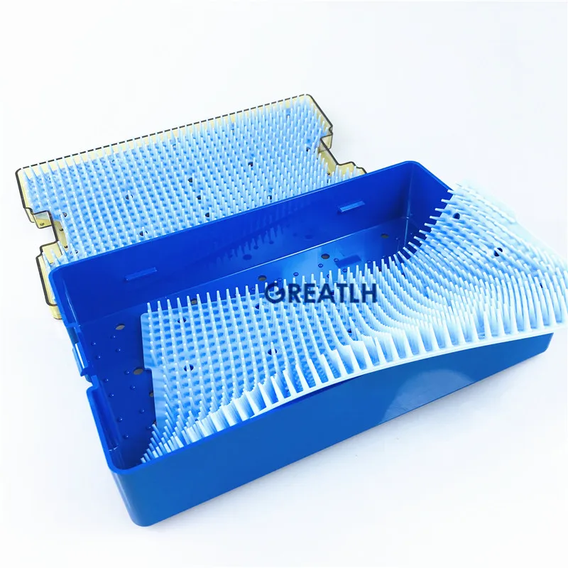 Двойные уровень поднос для стерилизации Размер: 260 мм * 160 мм * 45 мм Есть 2 силиконовых коврика в лотке Стерилизация всеми стандартными способами Автоклав/оксид этилена/сухой жар 320 °F (160 °C)/холодный раствор