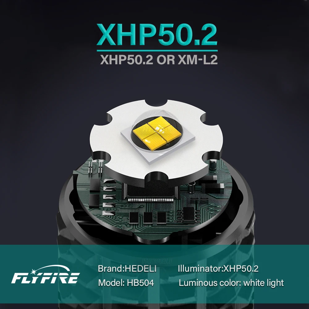 Использует светодиод XHP50.2 с максимальной выходной мощностью до 100000 люмен