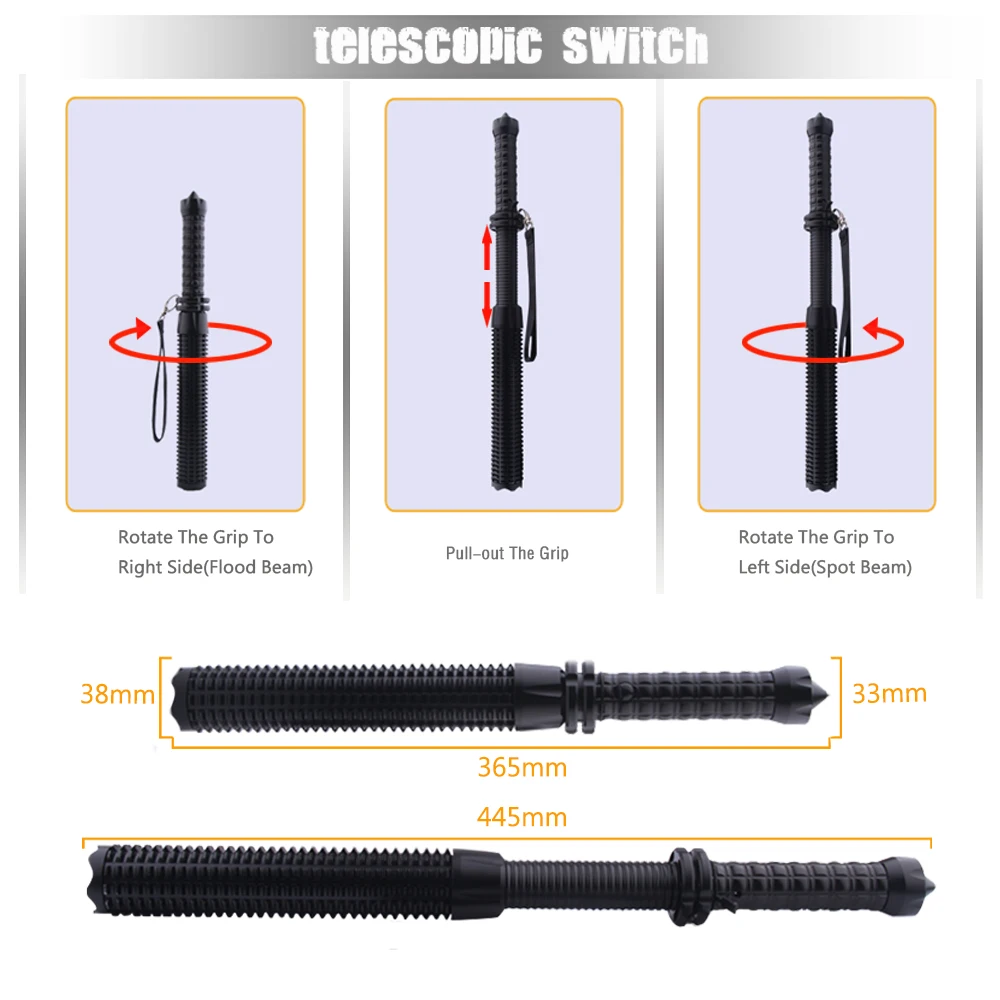 Вспысветильник тактическая бейсбольная бита фонарь мощный телескопический cree xml t6 светодиодный фонарь Батон вспышка свет самооборона 18650 или AAA