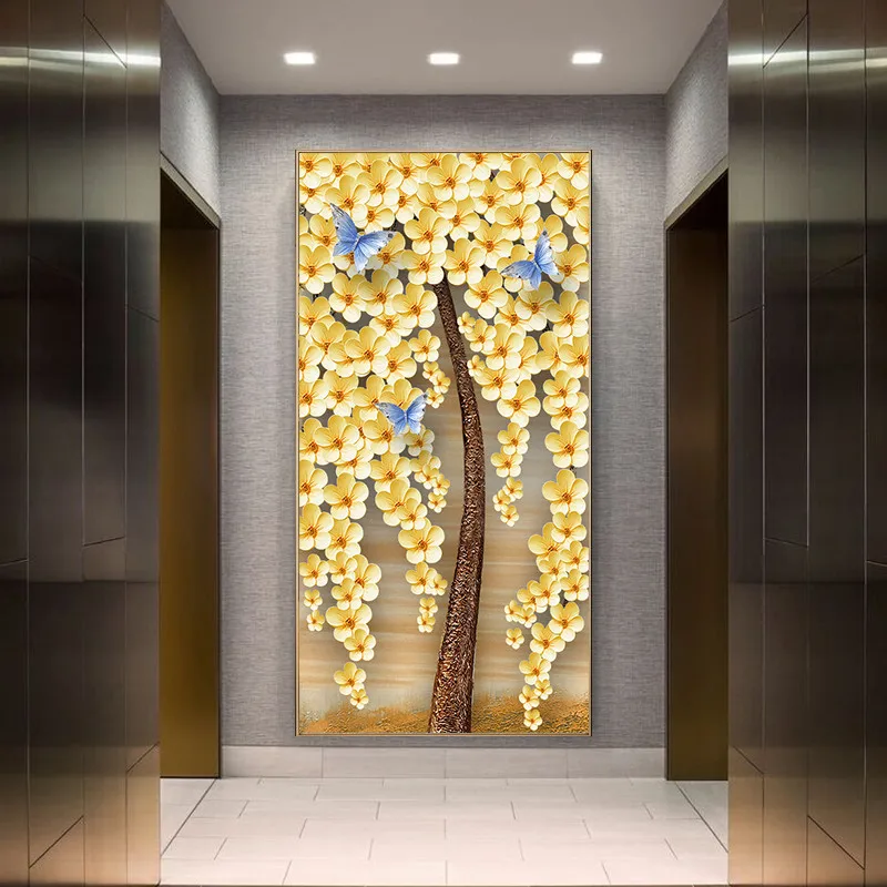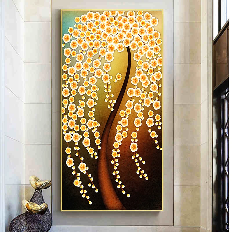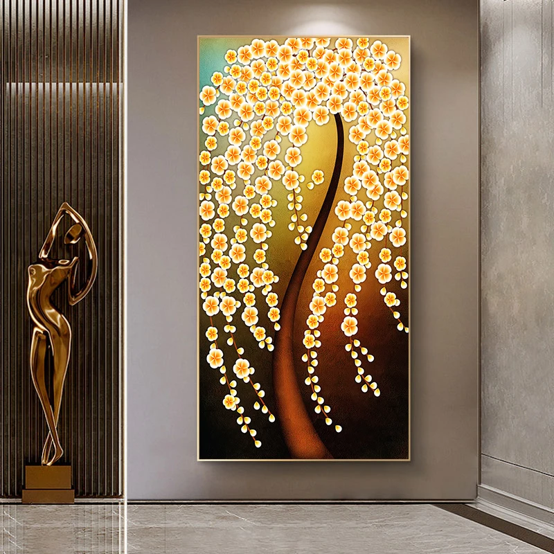 Абстрактные Золотые листья и деньги, картина маслом на холсте, плакат, современный пейзаж, Настенная картина, печать, украшение для дома