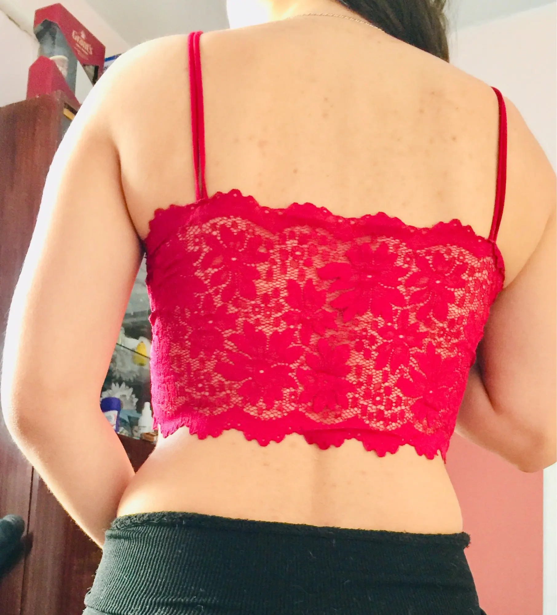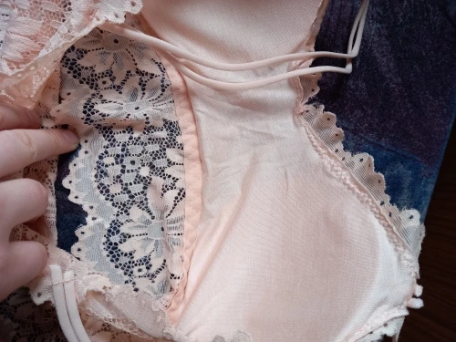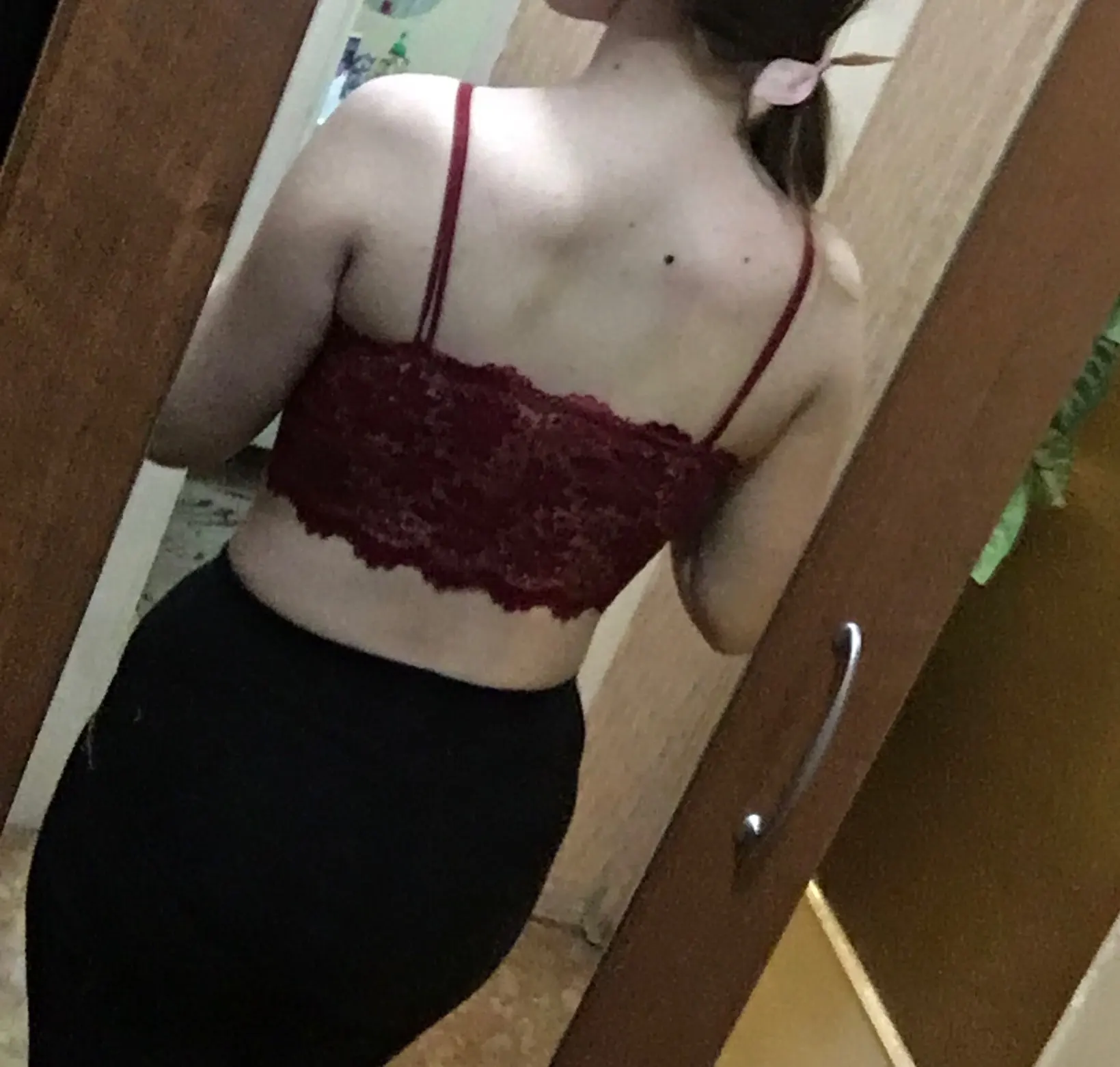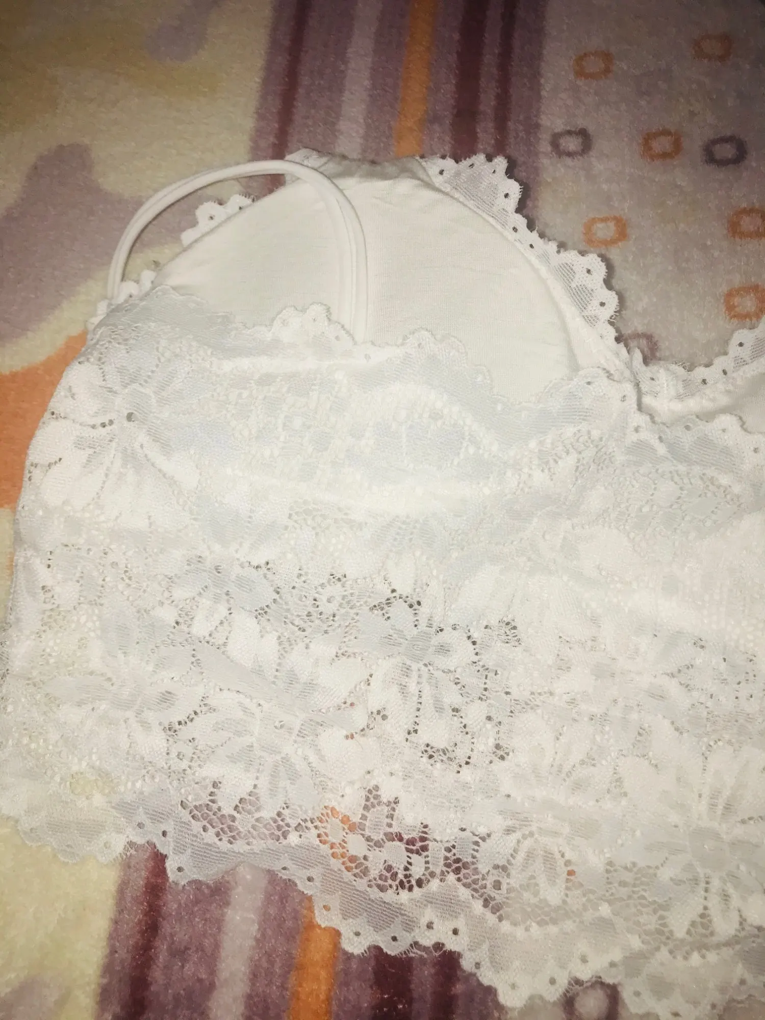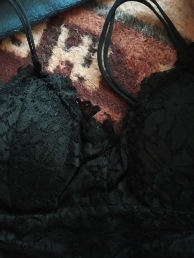 красивый бюстик-маечка) швы ровные, аккуратные, нитки не торчат, кружево тонкое, эластичное, дешевкой не выглядит) единственное, размер всё-таки маловат((( подарю кому-нибудь)))
