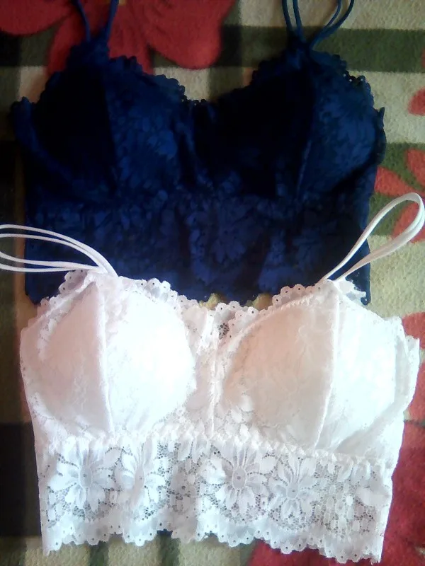 Топ пришел в прозрачном пакете. Неприятного запаха не было при вскрытии. Топ идет без косточек. Но при этом он отлично держит грудь со всех сторон. Это делает его очень комфортным в носке (ничего не давит, не мешает и не колит). Выполнен топ полностью из кружева. Кружево красивое, цветочное, отличного качества. Оно мягкое и приятное к телу, нигде не натирает, а главное удобное. В нем грудь дышит, не потеет. Внутри хлопковая подкладка. Вкладыши сделаны из тонкого поролона, вставляются внутрь, но при желании их можно вытащить. Выполнен топ очень качественно, все швы ровные, нитки нигде торчат. Сел топ шикарно, нигде не топорщится ,не выпирает, а удлиненная нижняя кружевная полоска делает его необычным и сексуальным. Я осталась очень довольна покупкой! Этот топ подойдет под рубашку/блузку , а также и вместо белья. Очень удобный и теперь один из моих любимых)