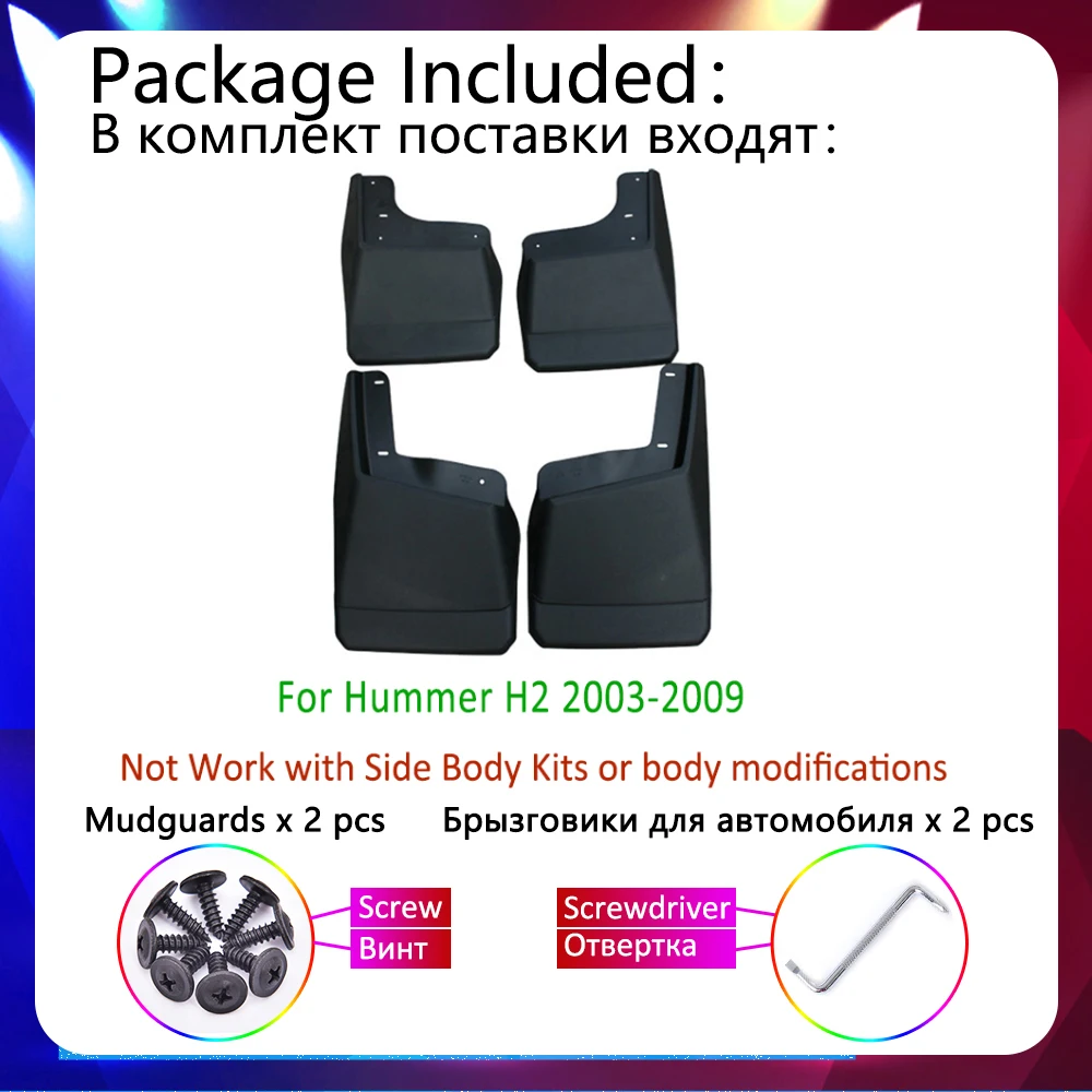 Брызговики автомобильные для Hummer H2 2003 2009, 2004, 2005, 2006, 2007