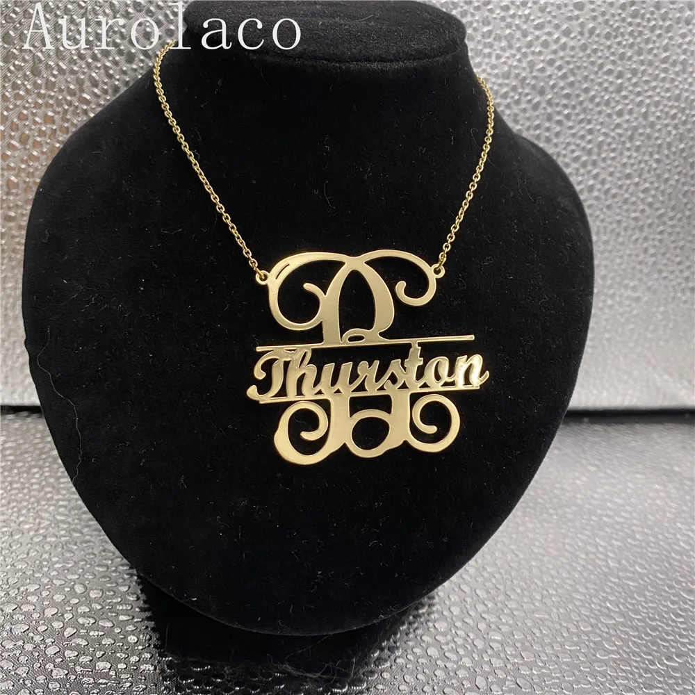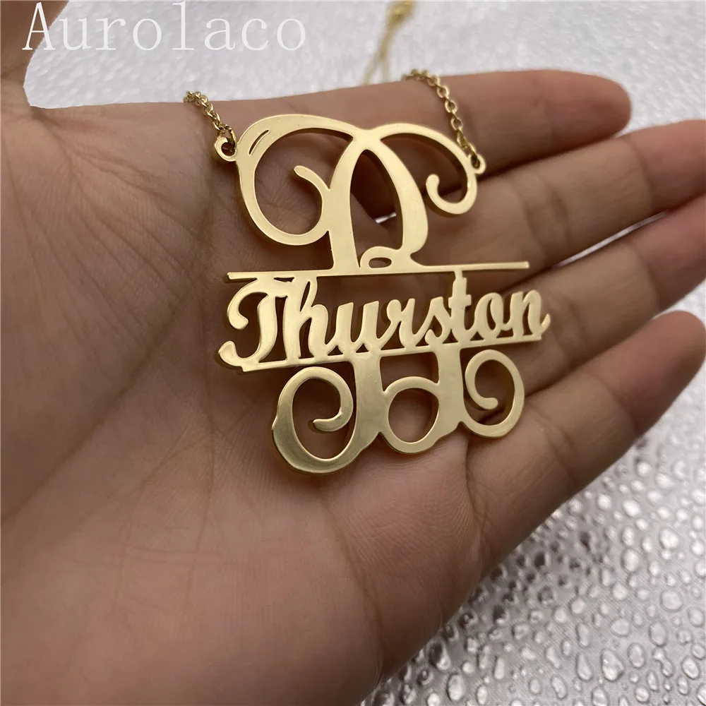 AurolaCo пользовательское имя ожерелье-подвеска в форме золото Цвет цепи индивидуальная именная табличка ожерелья для женщинмужчин подарки