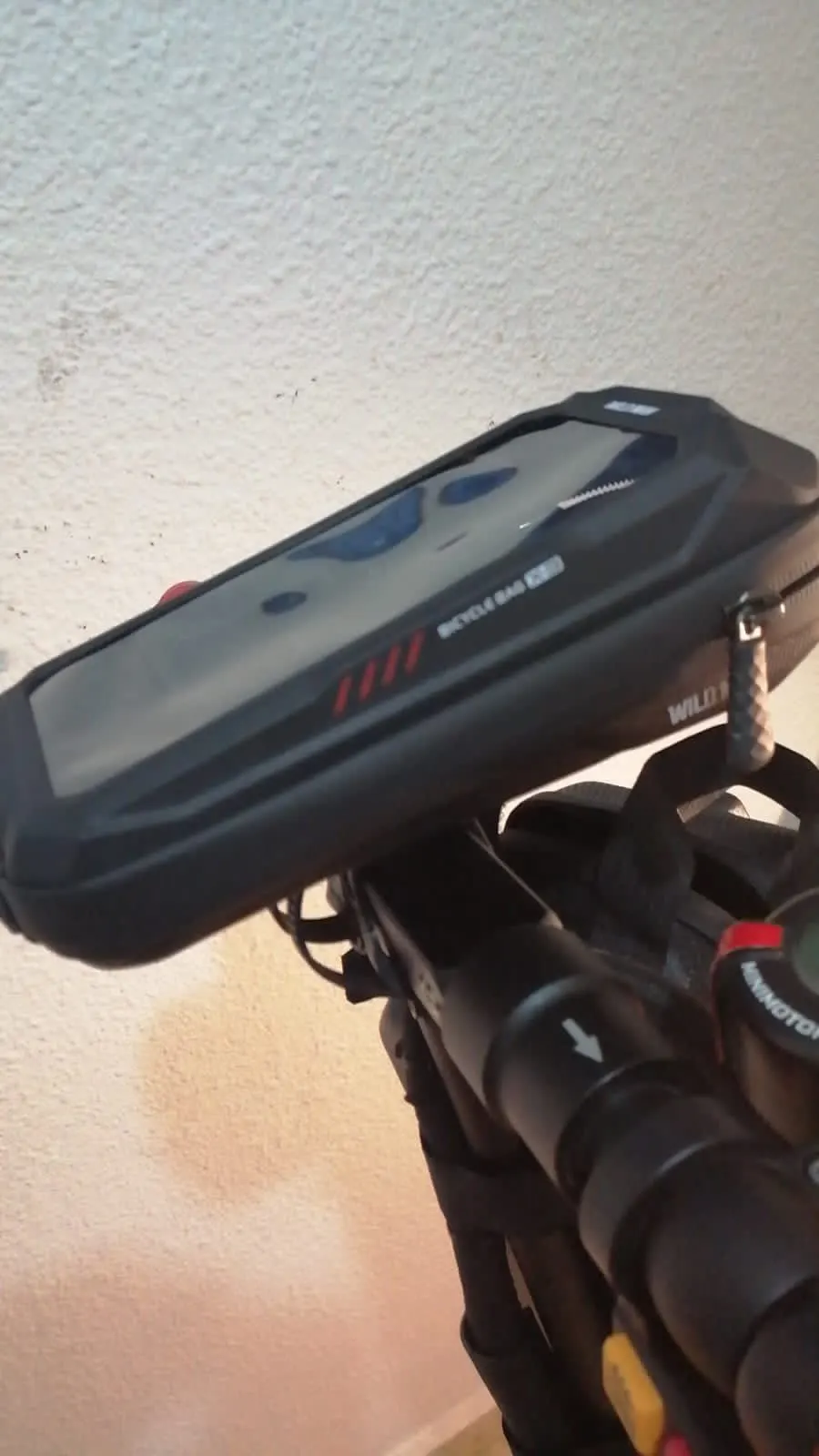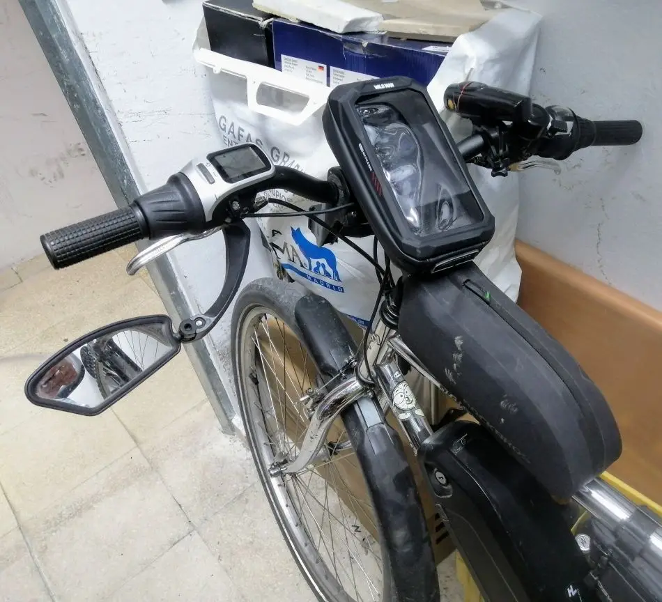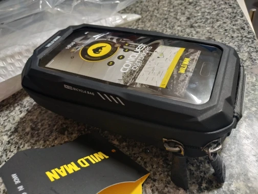 Он имеет хорошую отделку и выглядит качественно. Что я вижу немного слабым, так это зажим для крепления к велосипеду. Мобильный телефон хорошо держится, но с моим мобильным телефоном, если вы сильно сжимаете липучку, иногда нажимаете боковые кнопки, я решил ее, положив небольшую толщину пены.