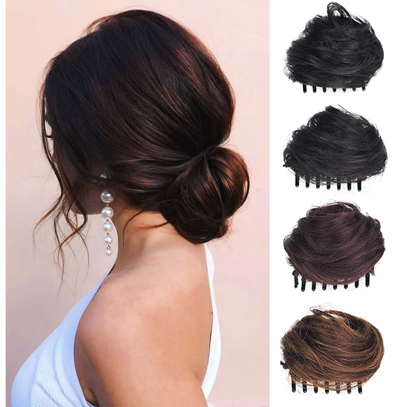 Кудрявый шиньон, бразильские человеческие волосы на заколках для наращивания, шиньон, Пончик, роликовая пучка, парик для женщин, волосы нереми
