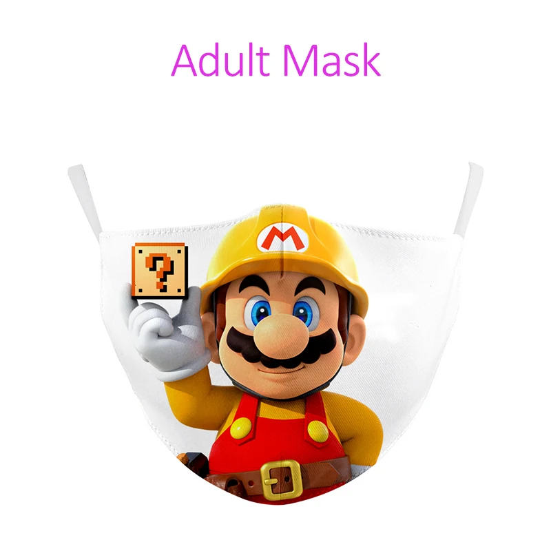 Маска для рта Super Mario для детей и взрослых, моющаяся Тканевая м...