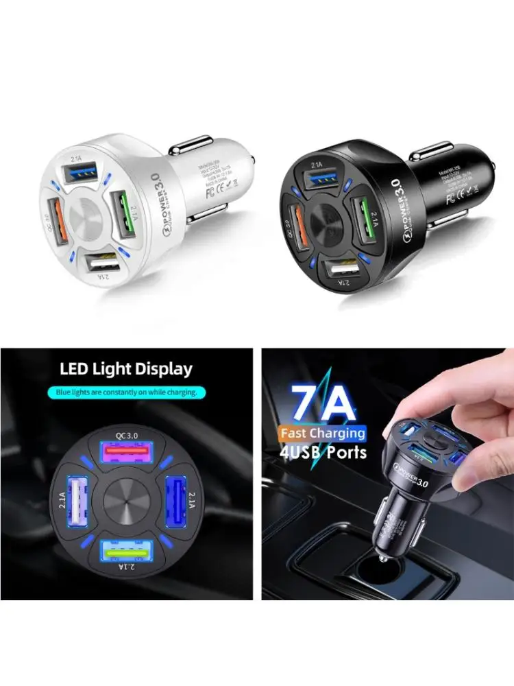 Автомобильное зарядное устройство Q9QD с 4 портами, 3 USB, быстрая зарядка 3,0, универсальная Быстрая зарядка в автомобиле, 4 порта