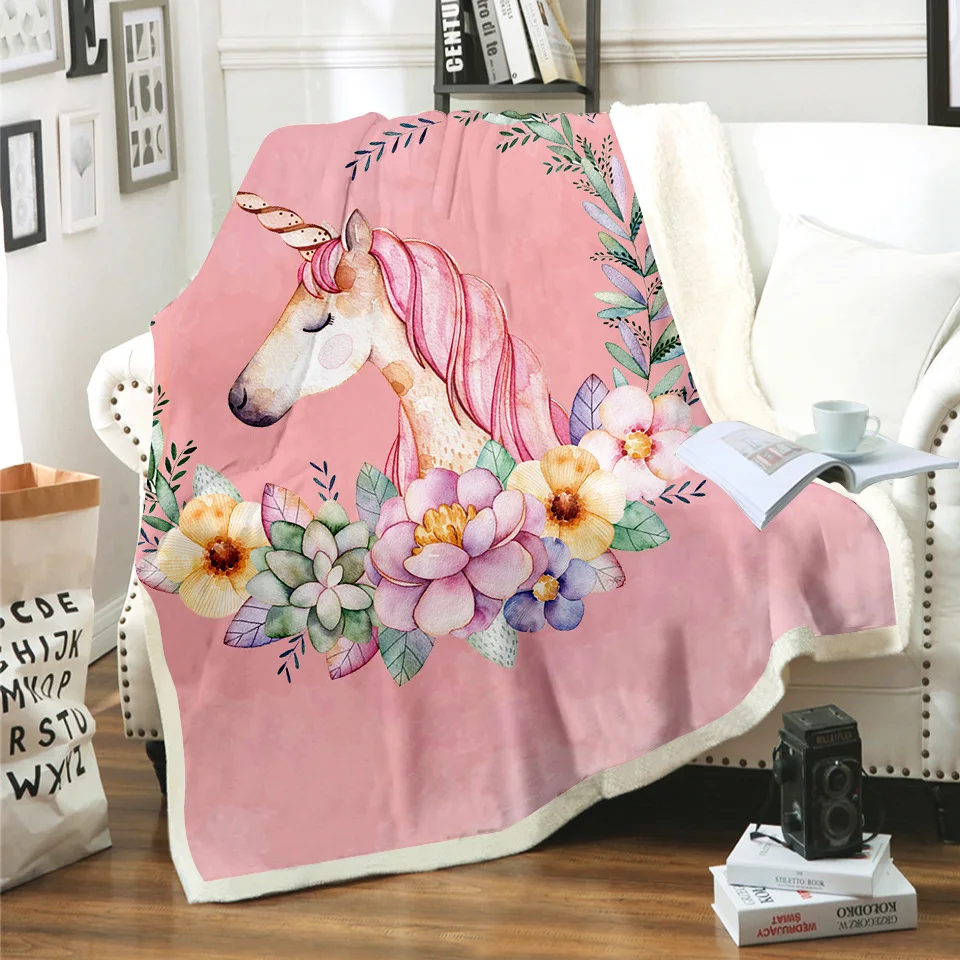 Милые Мультяшные единороги Детские Одеяла Пледы розового цвета 3D принт плюшевое покрывало для дивана покрывало для детей мальчиков девочек подарок