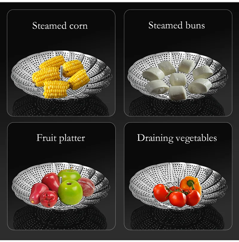 Новинка 2020, складное блюдо из нержавеющей стали, корзина для отпаривания еды, сетчатая кастрюля для приготовления овощей, отпариватель, расширяющийся кухонный инструмент