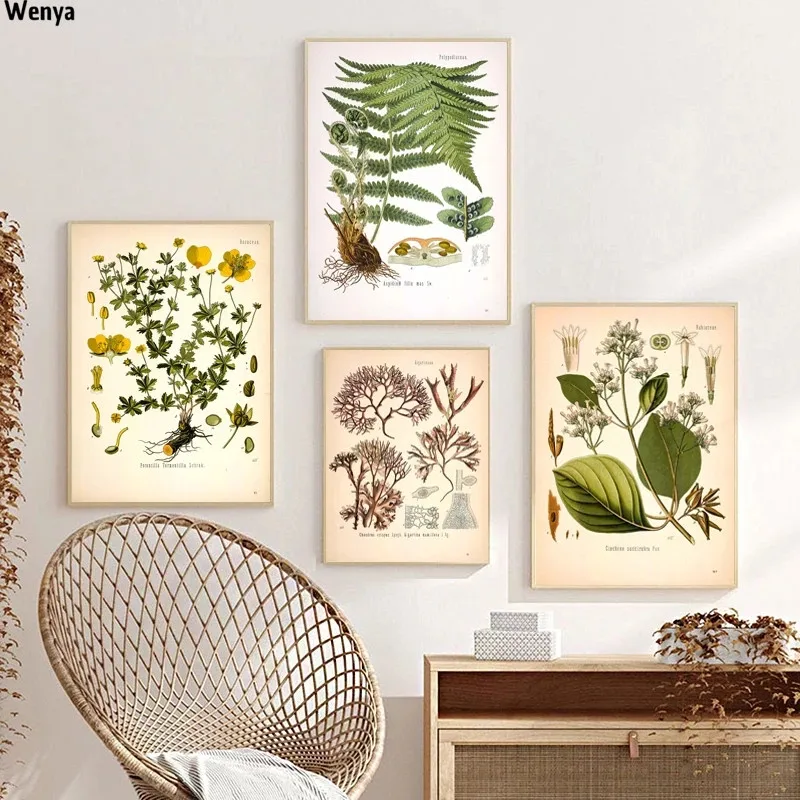 Винтажные постеры с растительными травами и принтами, домашний Наст...