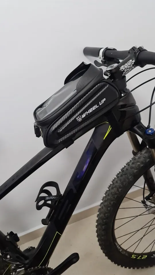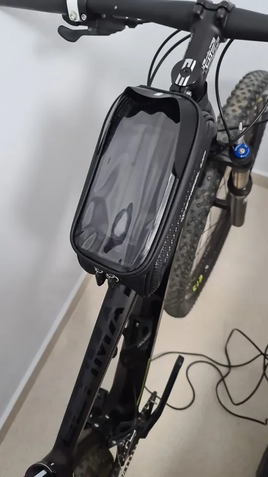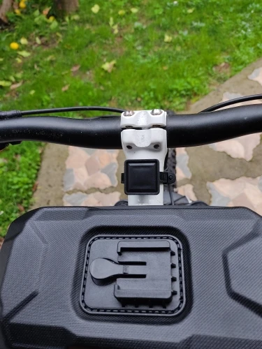 Хорошая сумка, но есть нюанся. В видео липучка фиксирует телефон вдоль, а на деле поперёк. От чего постоянно зажата кнопка снижения громкости. Так как площадка фиксатора закругленная, а вынос у меня прямой, то установить могу только на верхнюю трубу велосипеда, поэтому всплывает ещё один нюанс. Кнопка фиксатора на дне сумки расположена сверху, от чего не получится установить сумку вплотную к рулевому стакану