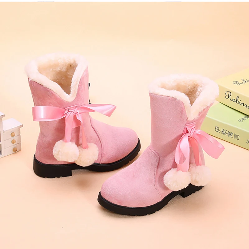 Для подростков, детей сапоги с высоким голенищем из плюша; Теплые зимние сапоги для девочек, меховые теплые боты вечерние платье принцессы обувь из материала на основе хлопка для детей возрастом 4, 5, 6, 8, 9, 10, 14 лет