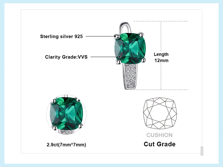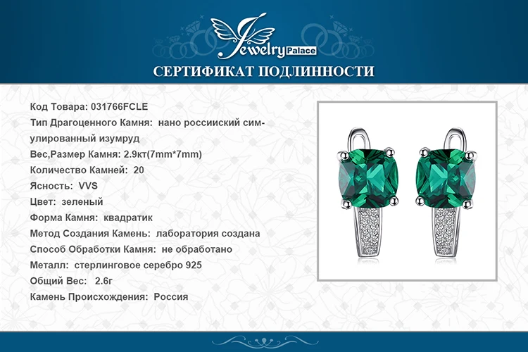Женские серьги-кольца из серебра 925 пробы с искусственным зеленым изумрудом