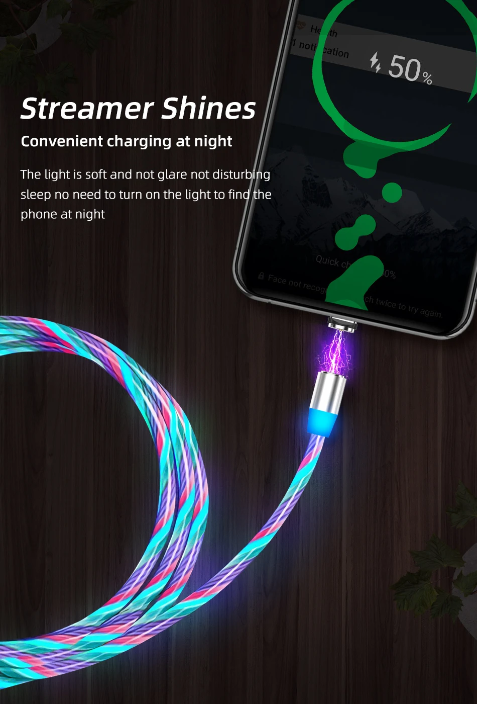 СВЕТОДИОДНЫЙ Магнитный зарядный кабель 1 м2 м Micro USB Тип C заряд...