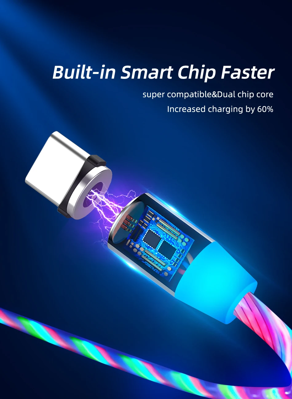 Магнитный светодиодный кабель для быстрой зарядки, светящийся кабел...