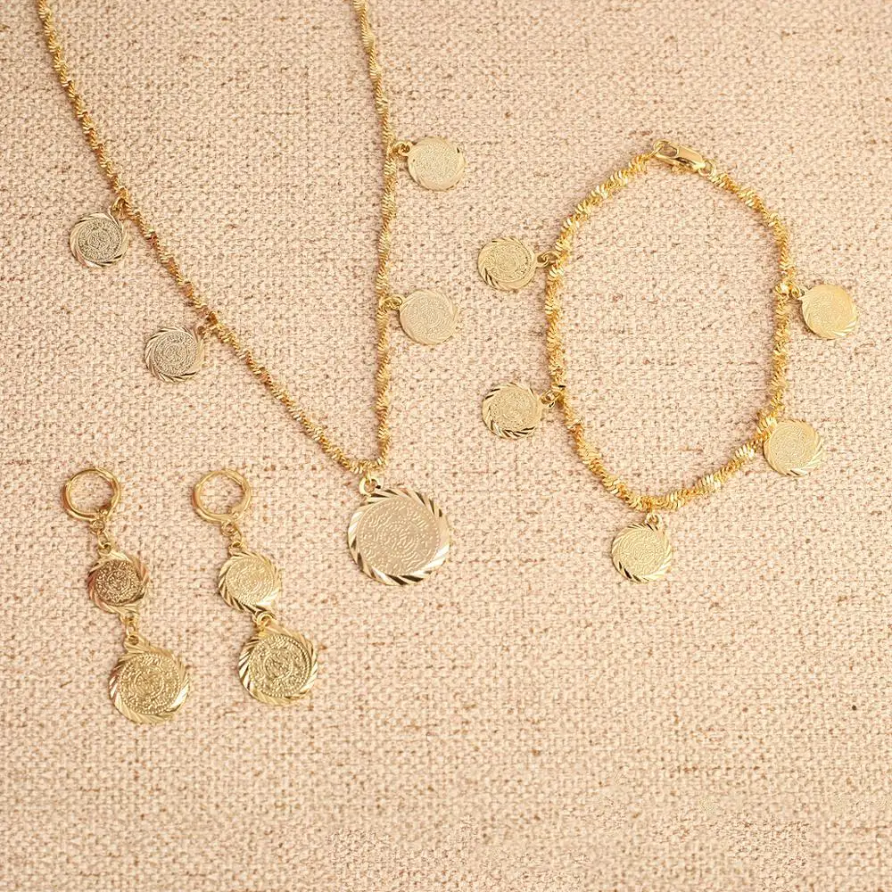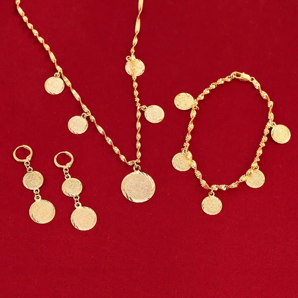 Эфиопская монета денежный Знак браслет ожерелье серьги для женщин 24 К Золото Заполненные Арабская Африка ювелирные изделия