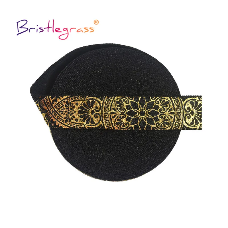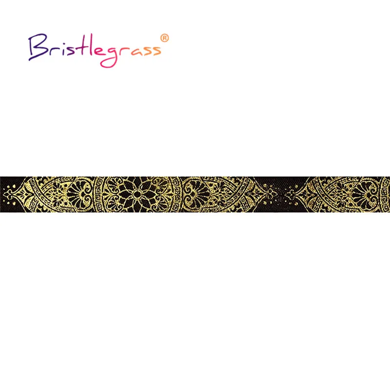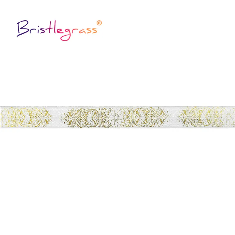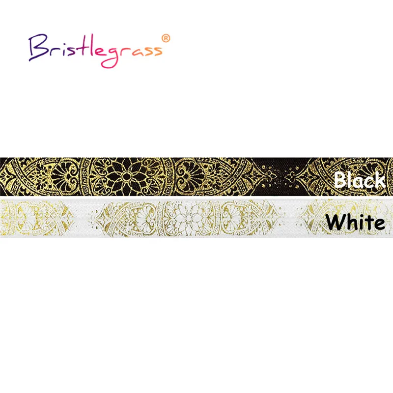 BRISTLEGRASS 2 5 10 ярдов 5/8 "15 мм Золотой лотос цветок лоза фольга печать раскладной эластичный враг повязка из спандекса лента для волос швейная отделка