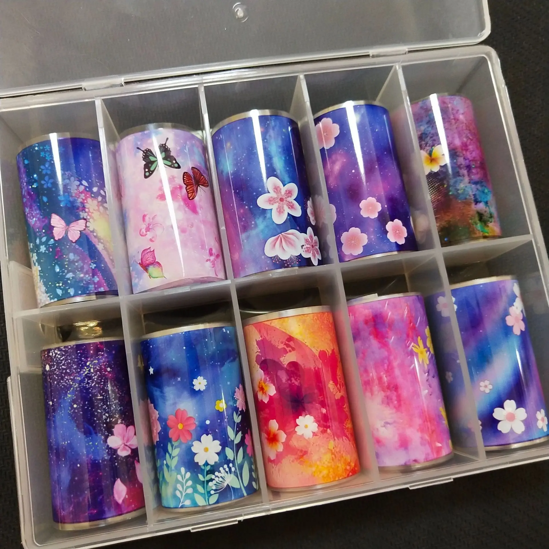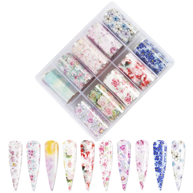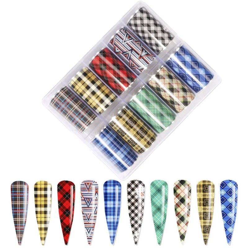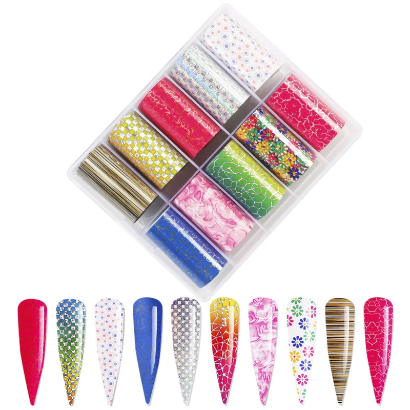 Переводная наклейка из фольги для ногтей, клейкая наклейка из фольги для ногтей, кончики для дизайна ногтей, блестящая наклейка для самостоятельной сборки, украшения для ногтей, 10 рулоновкоробка