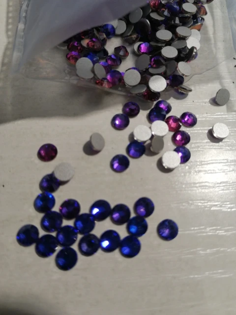 в целом стразы хорошие основа ровная без сколов. немного не однородная окраска, есть немного розовее, немного синее.