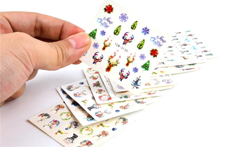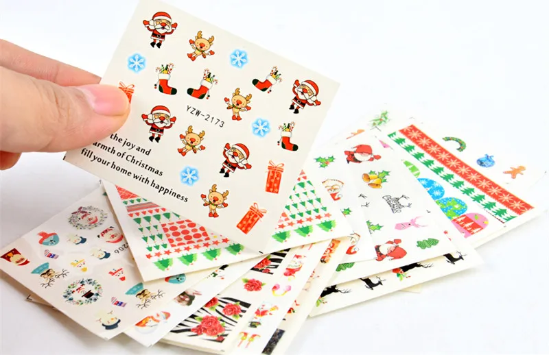 Наклейки для ногтей с водяным знаком, рождественские наклейки с изо...