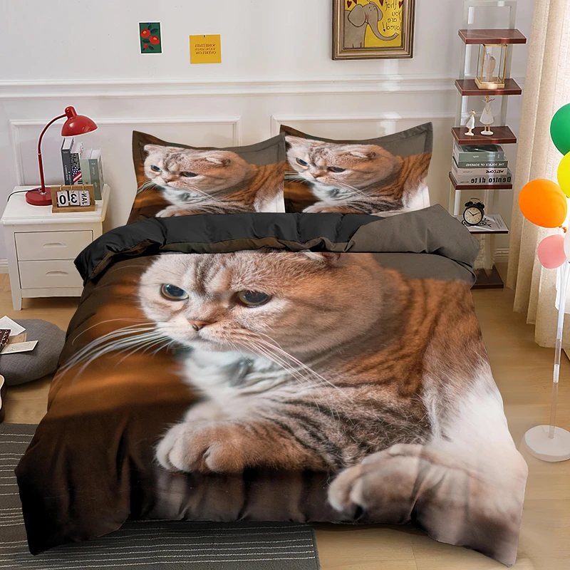 Постельное белье с забавным милым котом, размеры AU, US, UK, EU, для взрослых и детей, покрывала для кровати, 1, King, Queen, с животными, пододеяльник
