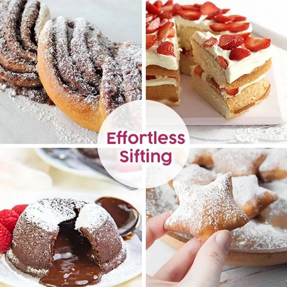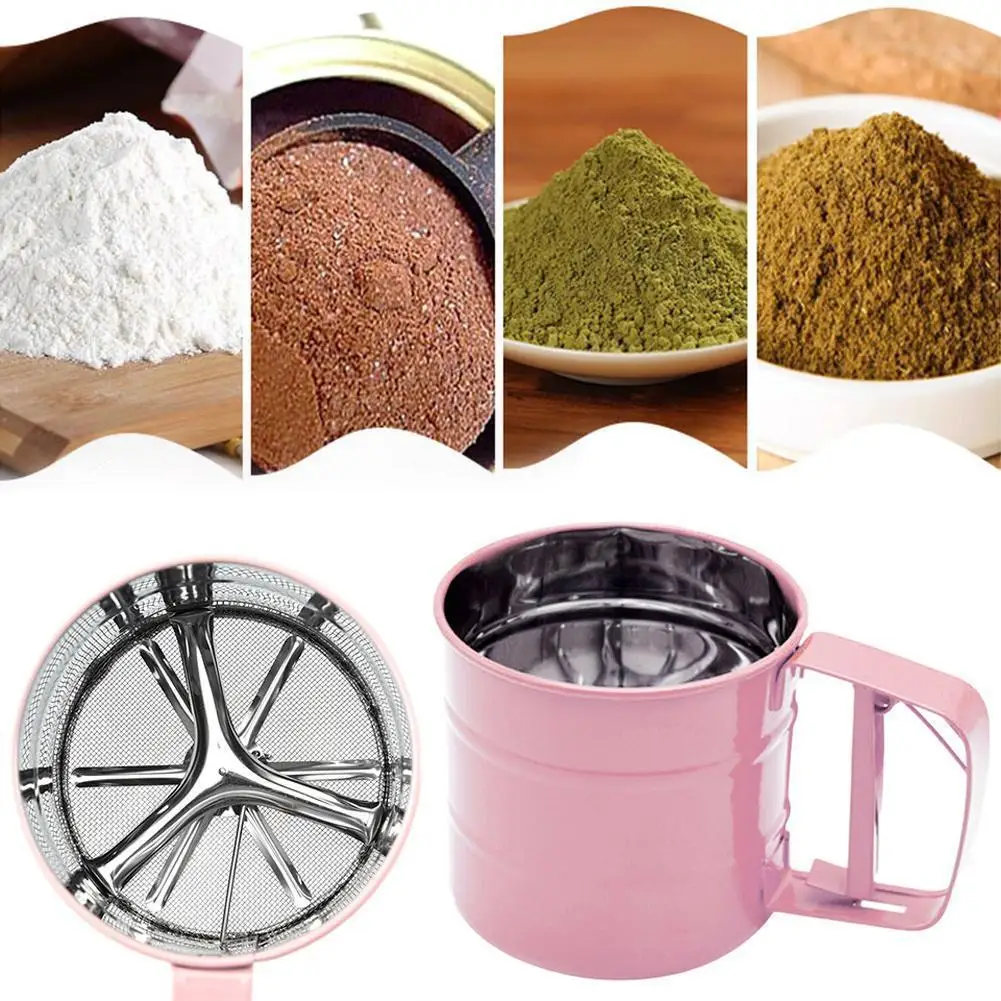 Ручной инструмент для просеивания муки, стальное полуавтоматическое ручное сито для муки, аксессуары для кухни, торта, кофе