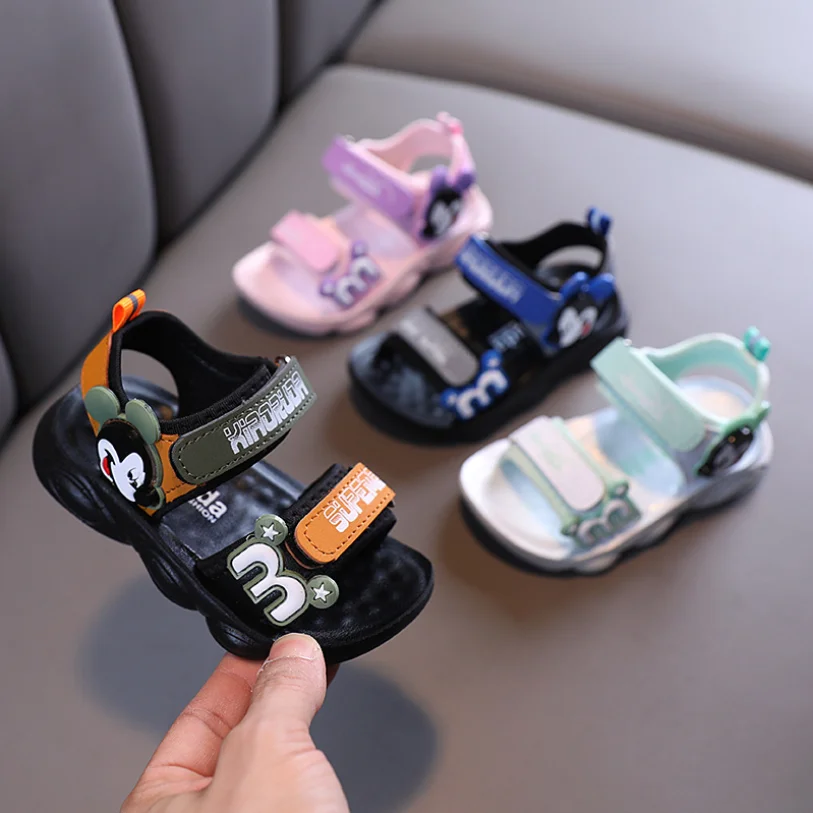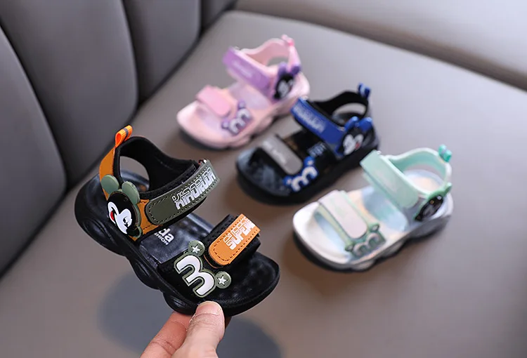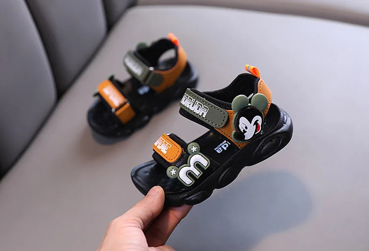 Детские сандалии с мультяшным Микки Маусом, мягкие, летняя пляжная обувь для начинающих ходить детей