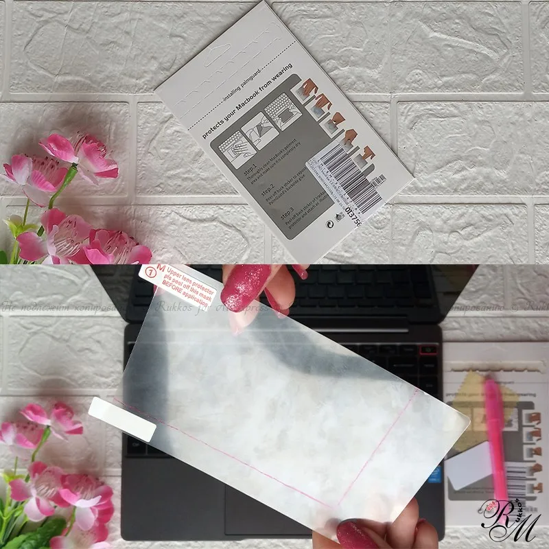 Почти месяц через Латвию, пленка в картонном блистере. Сама пленка моему ноуту оказалась большая, т.к. у меня другая марка - Chuwi, а под мой ноутбук пленки нет. Главное, что не маленькая. Отрезала, скруглила углы и наклеила, сняв сначала нижний защитный слой, потом верхний. Чтобы легче клеить, не снимайте сразу весь нижний слой (с красной надписью), а чуть-чуть его отогните, прикдейте пленку, затем, прижимая ее к поверхности, внимайте дальше этот слой. Пленка жесткая, матовая, шероховатая, очень удобно по ней водить пальцем. Приклеилась хорошо, она не липкая, а как бы присасывается к поверхности. Чтобы легла ровно, нужно перед этим тщательно очистить поверхность тачпада от всех пылинок и соринок. На 3 и 4 фото наклеенная, смотрится идеально, глядя сверху, даже не угадаешь, что там есть пленка. Ещё обзоры на ЮТуб, ник Mila Rukkos, плейлист AliExpress.Обзор покупок - товары для дома, хэндмейд, кухня, обувь, одежда, техника, бижутерия, маникюр и пр. Скоро будут новые, как время появится