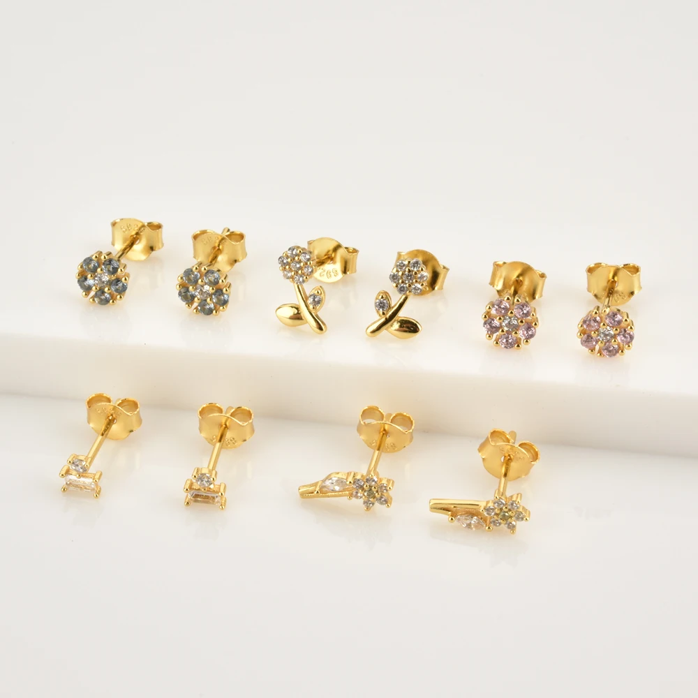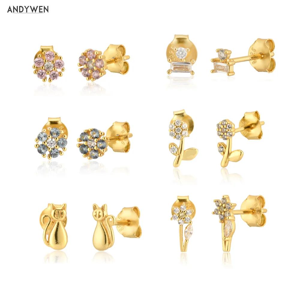 Серьги-гвоздики ANDYWEN из стерлингового серебра 925 пробы с цветным цветком маленькие европейские модные ювелирные украшения для пирсинга 2020
