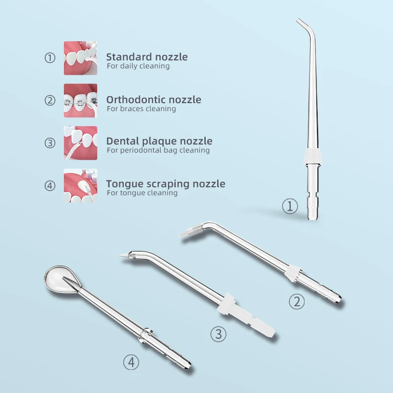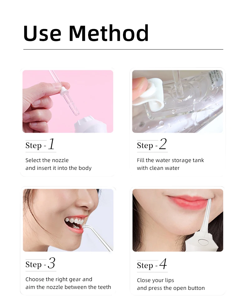 Packing listOral irrigator*1, USB charge cable*1, Nozzles*2