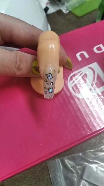 Я получил это, и я должен сказать, что качество хуже, чем вы видите на фото, кусочки пластика сверху выходят повсюду, а размер ногтя пальца-Размер девушки, а не взрослого, очень маленький, определенно для идеального практики. Я бы не купил его снова