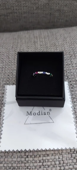 Beautiful ring! It even came with a MODIAN branded gift box and polishing cloth. I'm not convinced that the ring is 925 sterling silver like they claim though, I think it is more likely to be silver plated. I will see if it changes colour and report back.