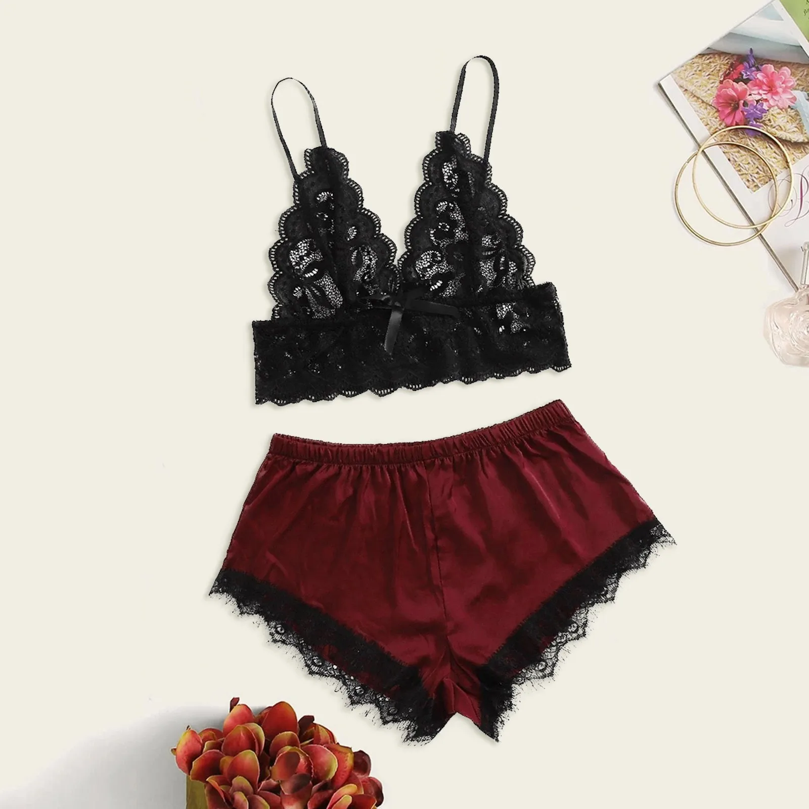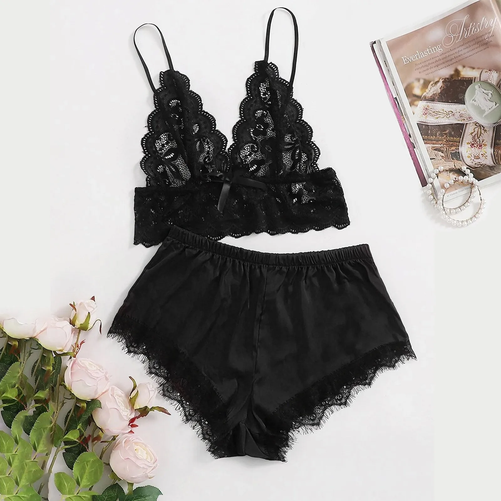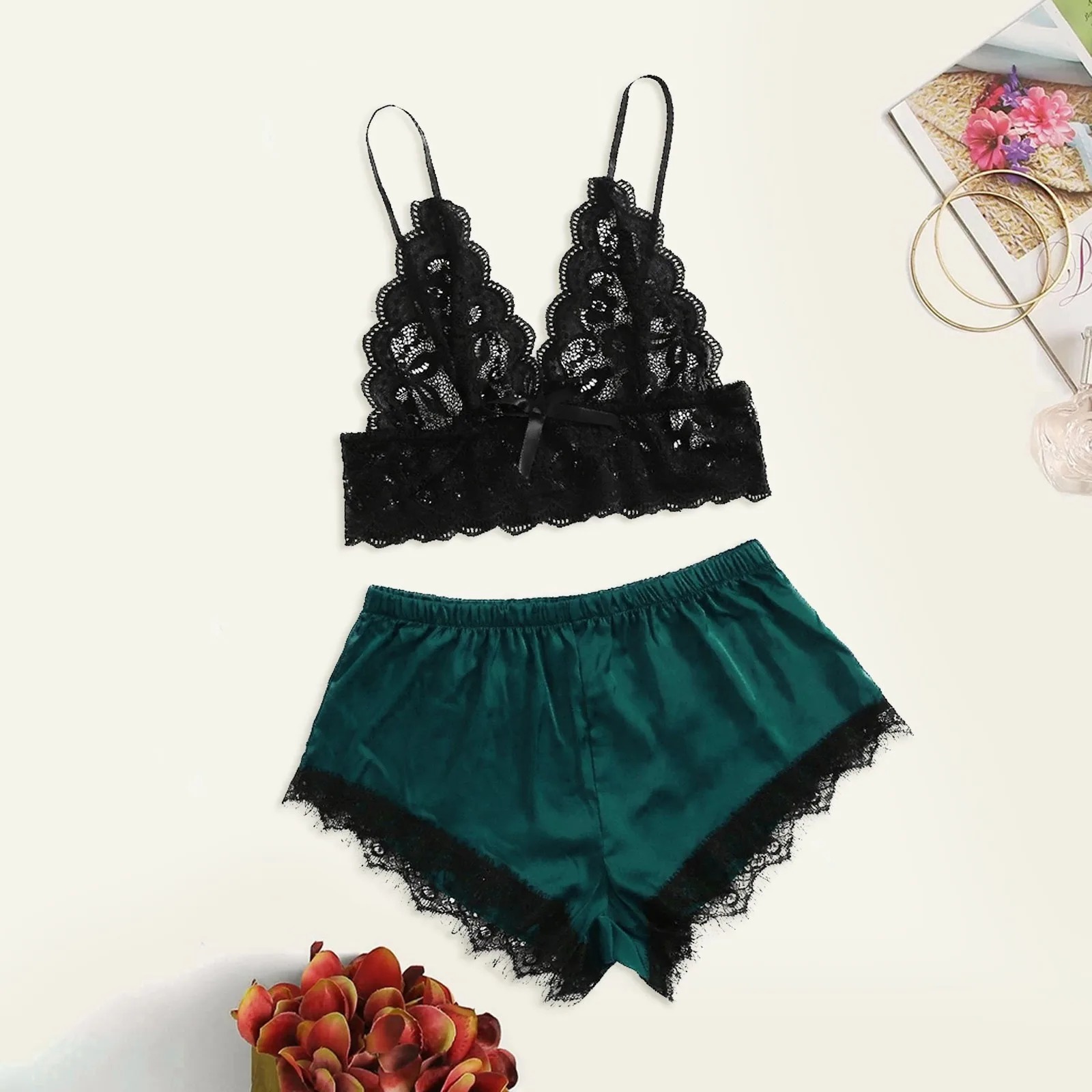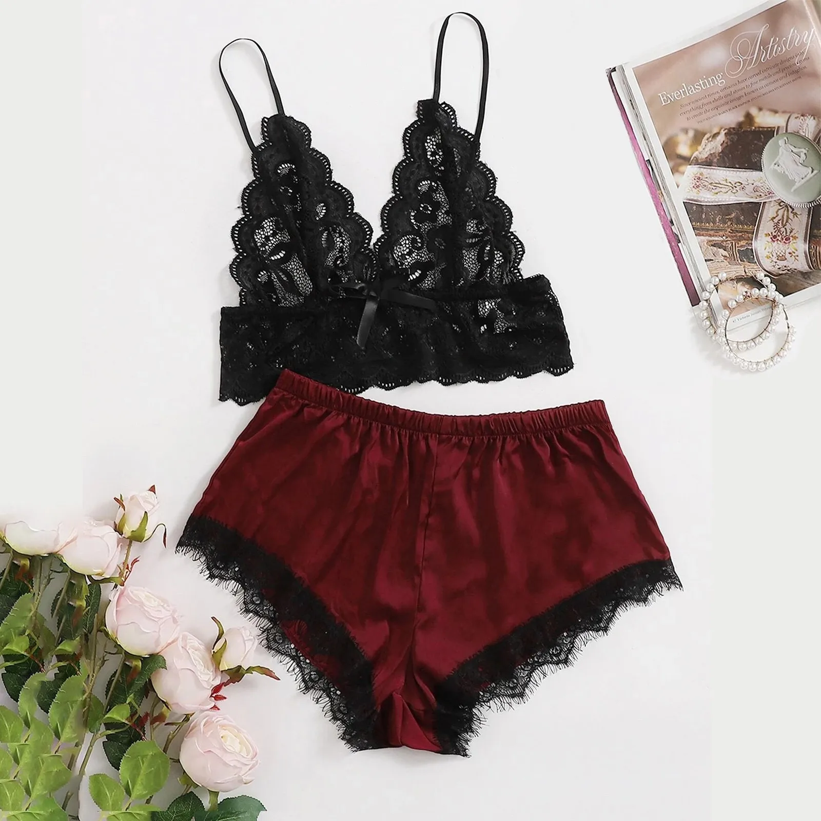 Новое сексуальное кружевное белье, шелковое нижнее белье, пижамы, атласное нижнее белье