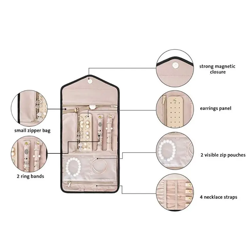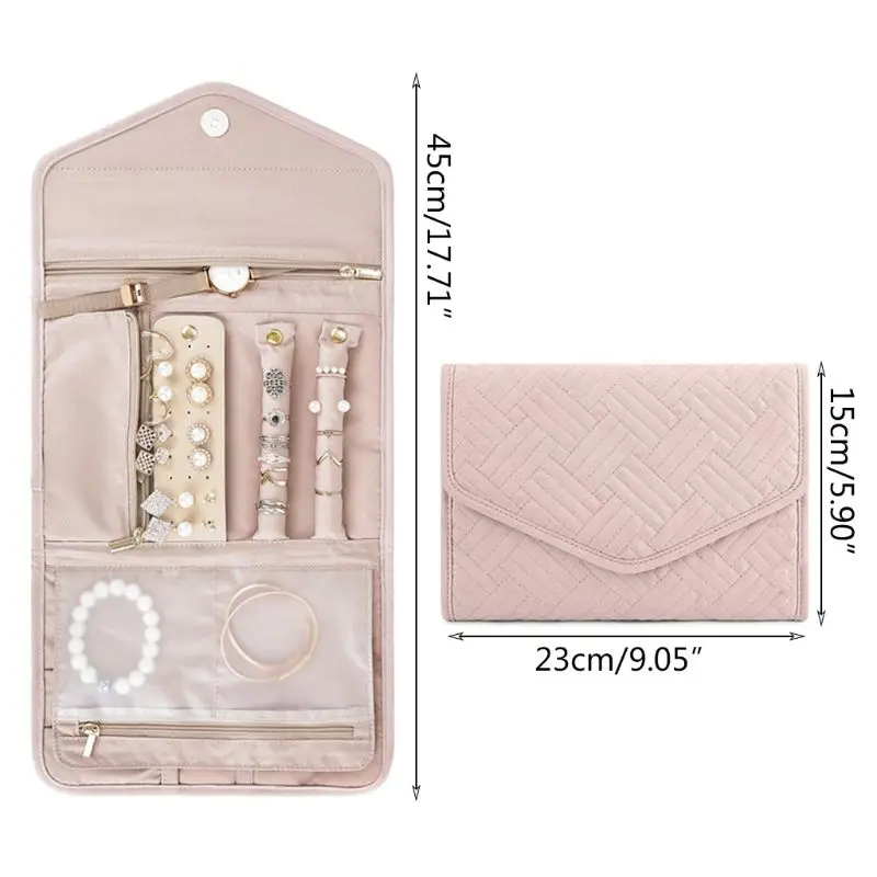 Чехол для украшений, складной, дорожный органайзер для бижутерии рулонов, для путешествий-кольца, ожерелья, браслеты, серьги