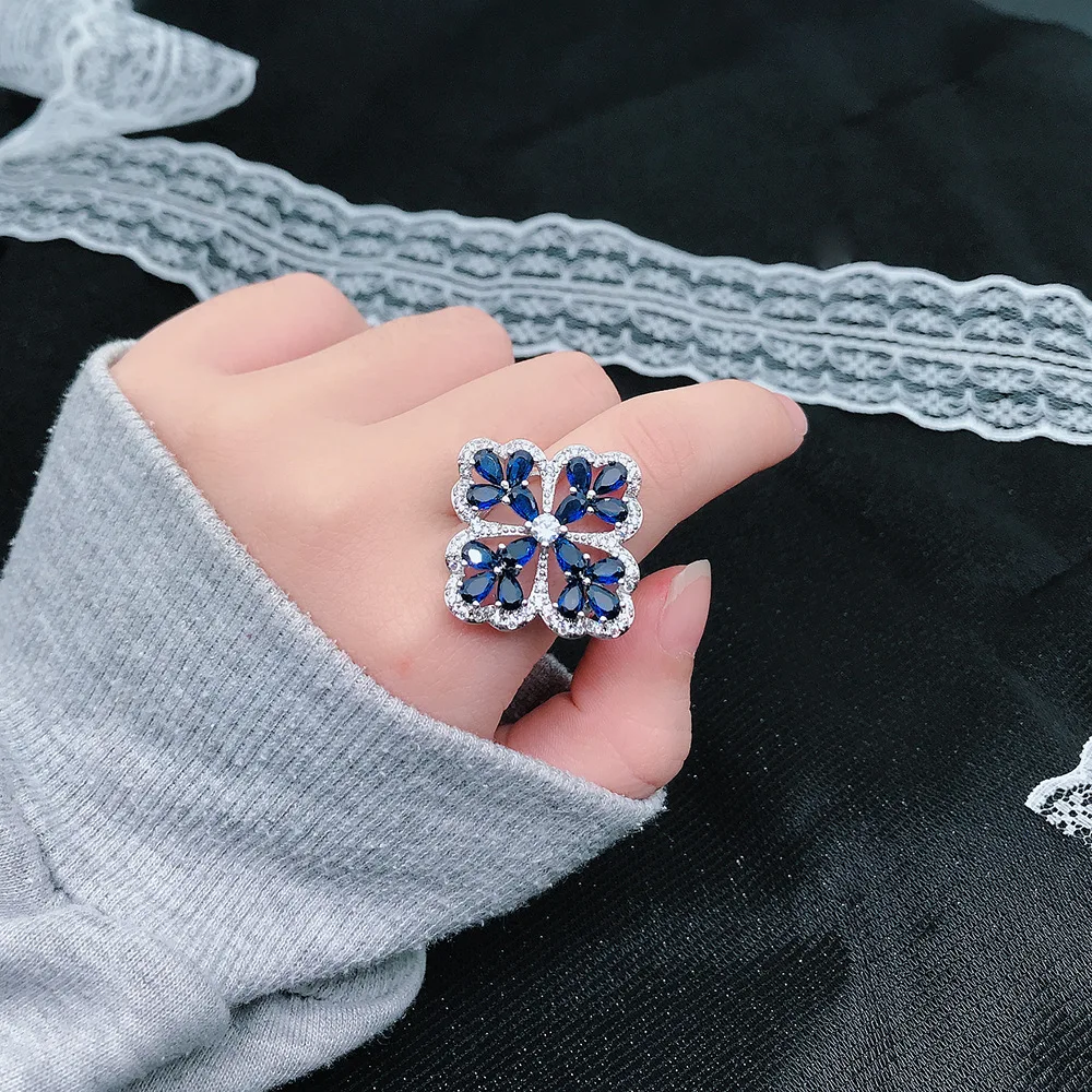 Потрясающее ожерелье из стерлингового серебра 925 пробы с голубым Цирконом и четырьмя листьями клевера кольцо для коктейвечерние свадебный подарок