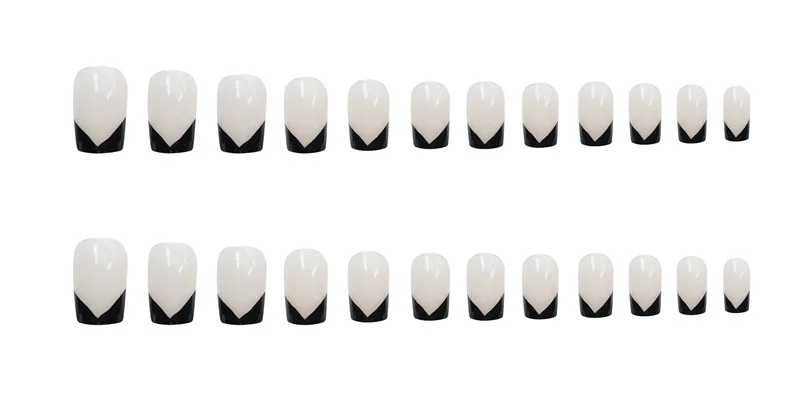 Накладные ногти в американском стиле, чистый цвет с черным V-образным узором, 24 шт. с прессовым клеем, накладные ногти для французской леди