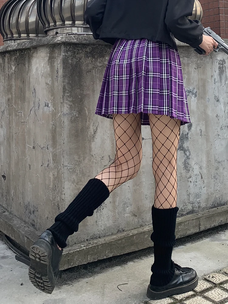 Однотонные черные крутые вязаные длинные носки в стиле панк, женски...