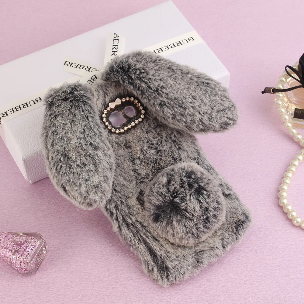 materialSoft Silicone + Fluffy rabbit Warm Plush Phone Back case