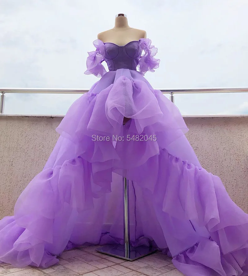 Платья для выпускного LORIE, с открытыми плечами, из органзы, с оборками, лавандового цвета
