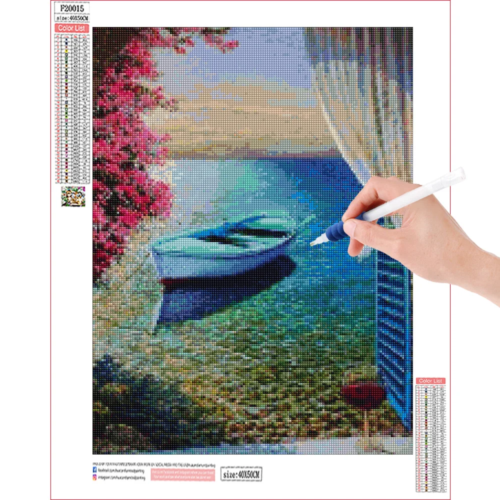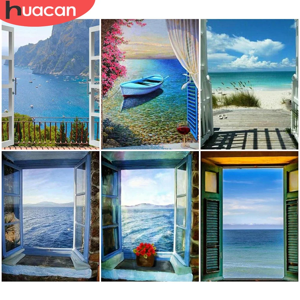 HUACAN DIY Алмазная Картина Пейзаж море 5D камни в форме ромба стразы из картина крестом окна мозаика алмаз стены искусства