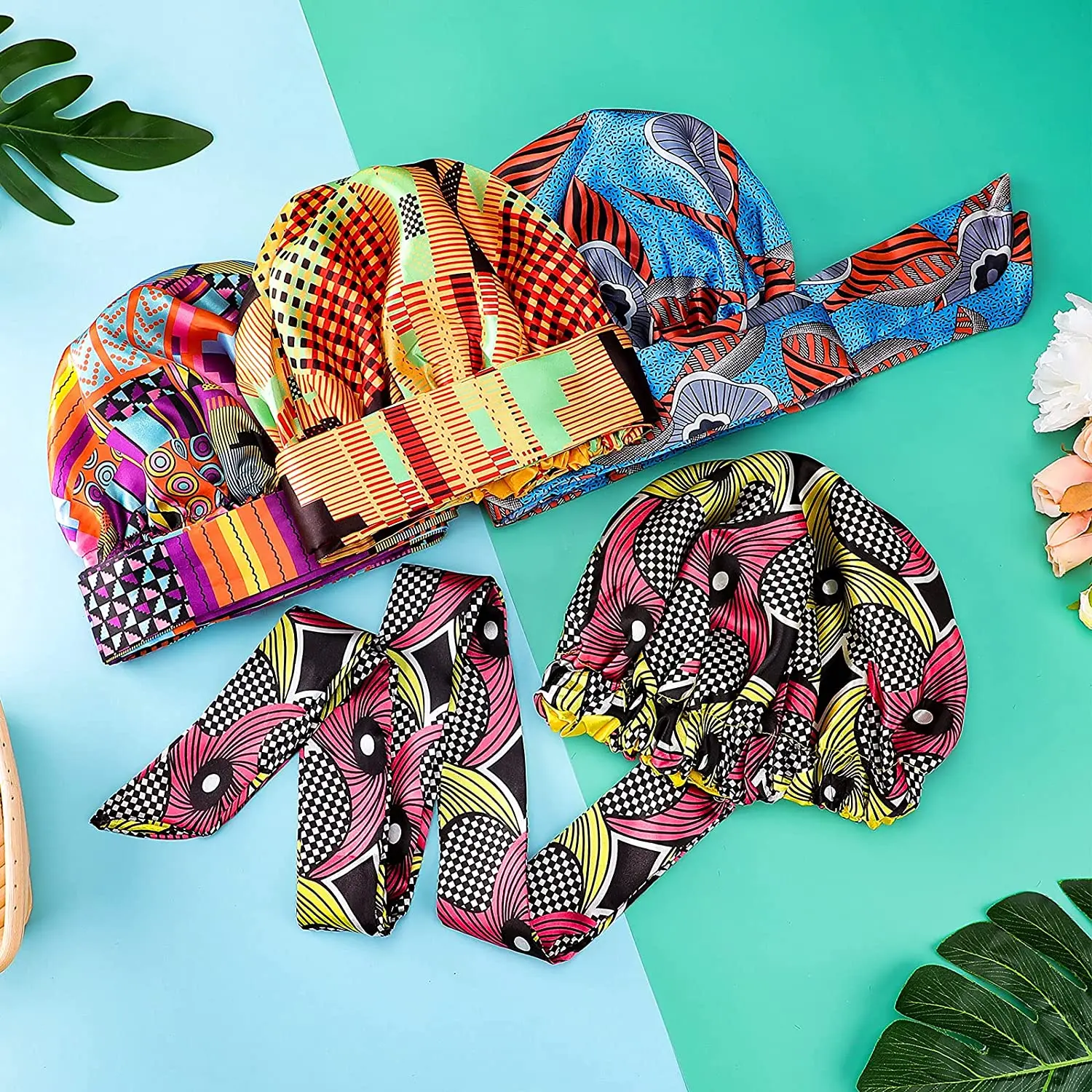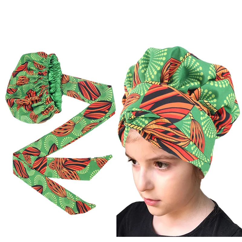 Африканские атласные чапсы на подкладке, Детская шапка-тюрбан для девочек, Женская очень большая шапка, Анкара, Длинная лента, головной убор, Анкара, шапка для волос