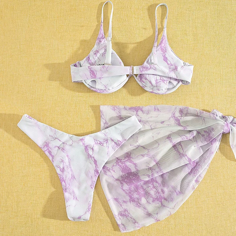 Женское бикини пуш-ап, с мраморным принтом, 3 шт.