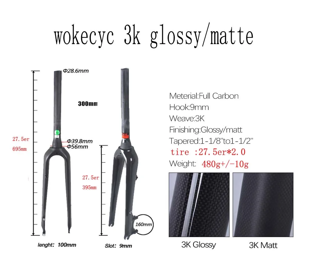 Wokecyc 1-18 "T800 3K вилка из углеродного волокна для горного велосипеда, дисковый тормоз, жесткие вилки 2627.5er