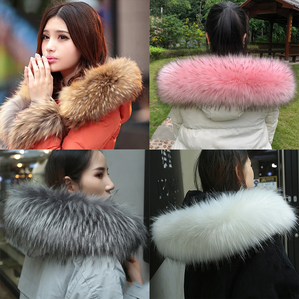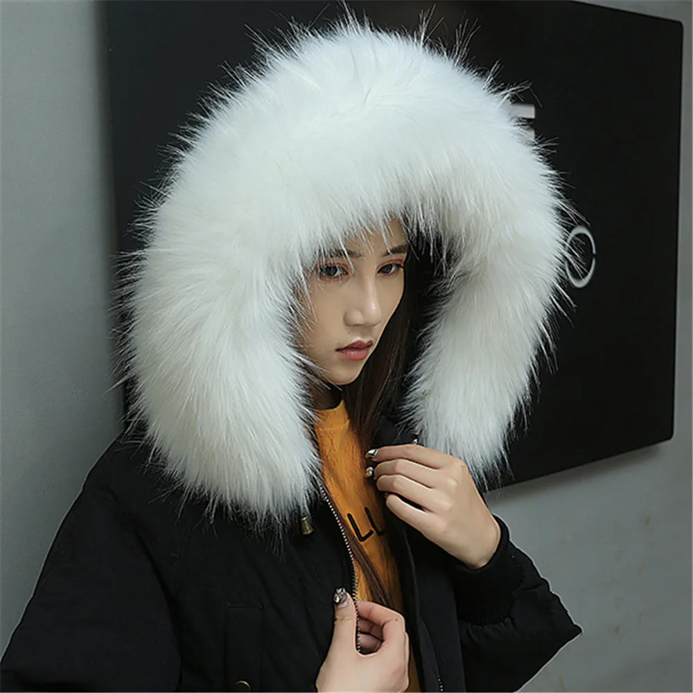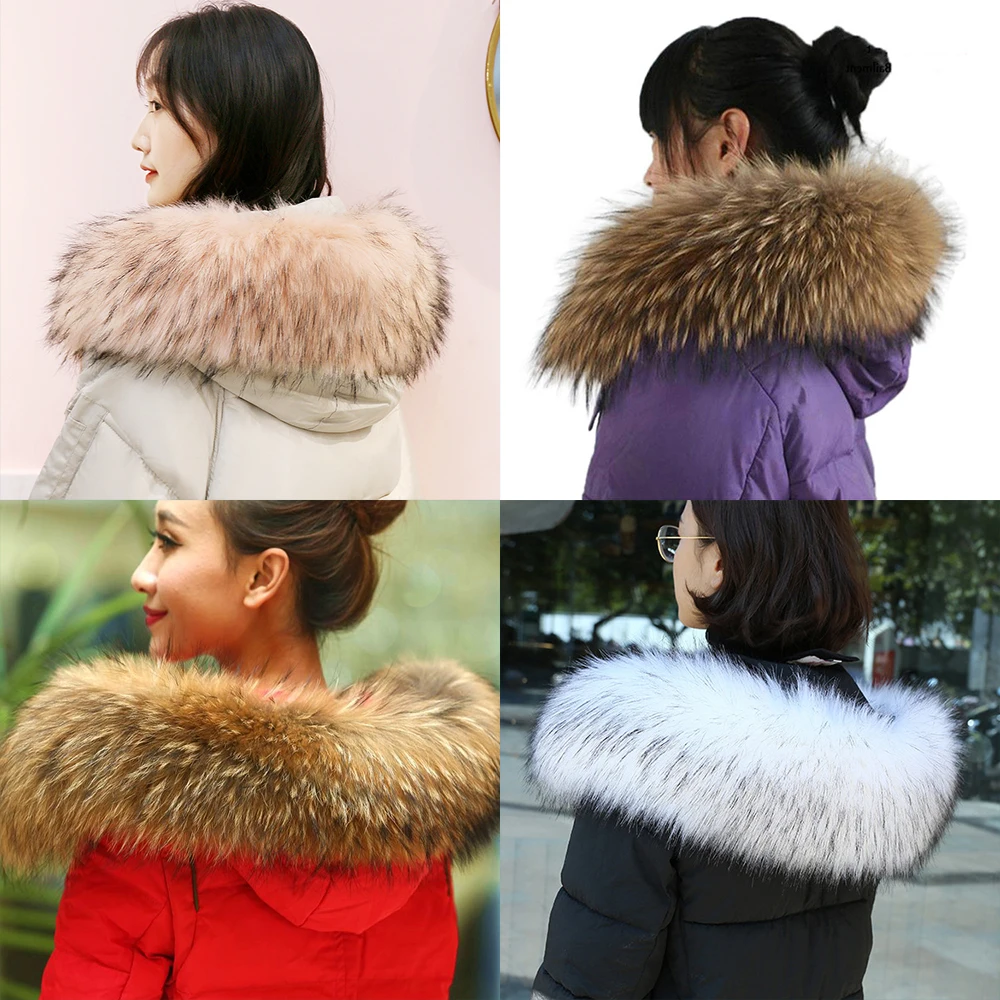 Съемное зимнее пальто, меховой воротник, женский меховой воротник из искусственного енота, куртка с капюшоном, меховое украшение, Шейная теплая шаль, накидка, аксессуар для одежды