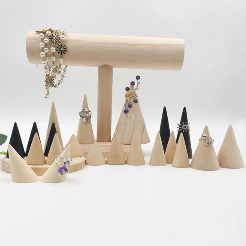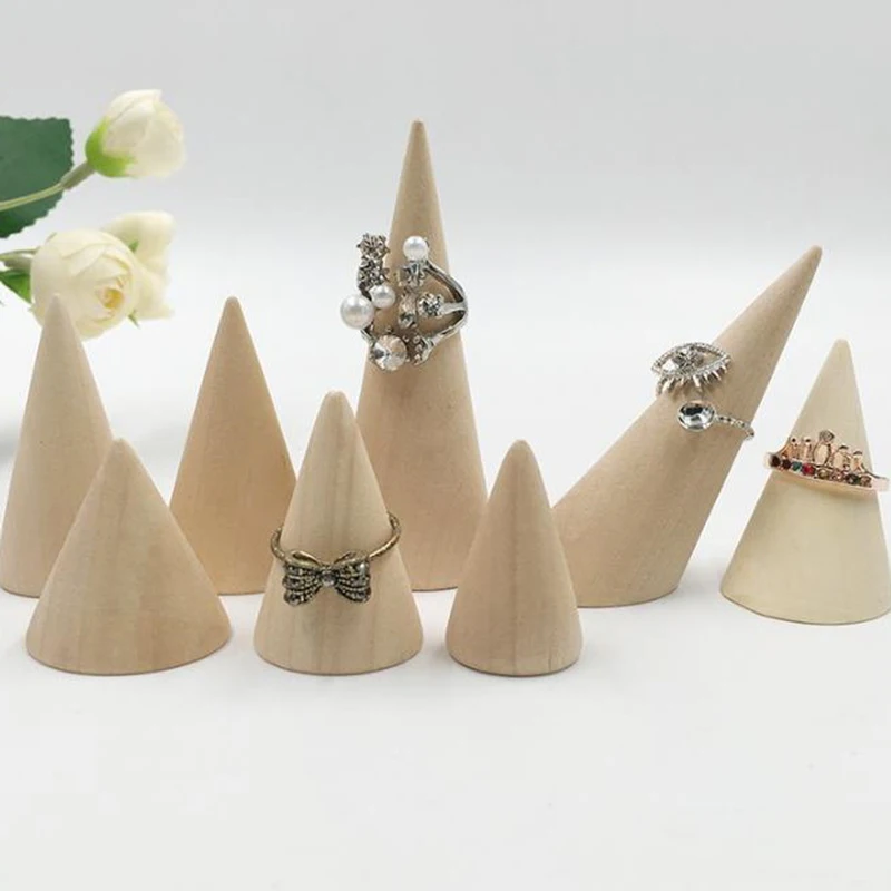 1 шт. винтажный натуральный Неокрашенная древесина палец конический держатель кольцо ювелирных изделий стенд Органайзер стеллаж для хранения