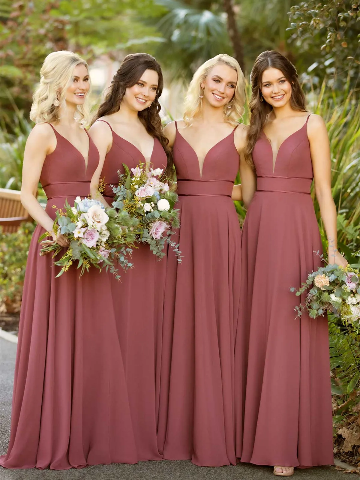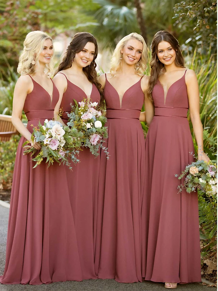 Элегантные Простые длинные шифоновые платья в пол без рукавов на тонких бретельках с V-образным вырезом для свадебной вечеринки